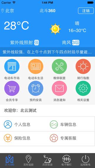 北斗360app1.0.9特色: 1、运程断电执行设备可通过手机远程控制电动车电路,有效的防止盗抢。 2、自动记录电动车行驶记录,回放过程可查看当时车速,方向,等信息。 3、定期推出针对会员的各项线下特惠商品、活动,为会员提供更多优惠及福利。