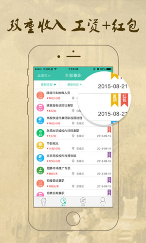 兼职宝app应用特色: 1.高于行业平均薪资,帮你快速兼职挣钱。 2.现金红包等你来,兼职活动约起来。 3.严格认证企业信息,保障薪水。 4.发现收费,十倍赔付。