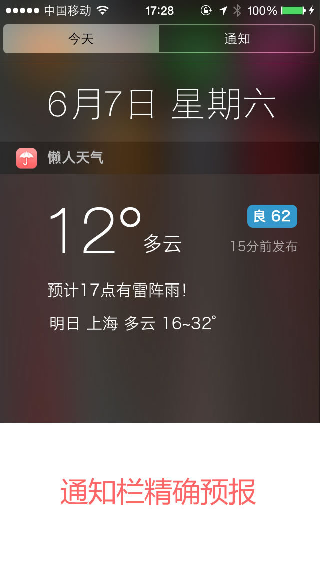 懒人天气预报最新版1.6.9 1、记得带伞:今天有雨时提醒。 2、温度骤降:气温比昨日骤降超过5度时提醒。 3、天气预警:当地气象局发布的最及时的天气预警。