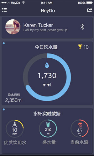 嘿逗安全水杯app应用特色: 1.监控你的水杯记录,可查看自己的历史数据! 2.使用非常方便,直接用蓝牙就能获取你所拥有的设备的数据。 2.能够支持自己设定饮水目标哦,想喝多少水,直接就有嘿逗安全水杯app提醒你!