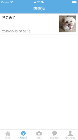 安安帮特点: 1、安安随时在线接受你的咨询。 2、为本地的居民之间的互帮互助建立一个平台。 3、在线咨询你想问的问题或者想找回丢失的担心,动用集体的力量。