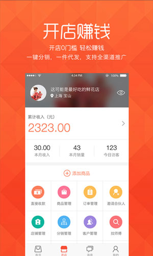 萌店app是一款十分便捷的手机软件!这里有着最给力的开店赚钱的门道,在萌店app上面,开店0门槛,轻轻松松就能赚钱!萌店app支持一键分销,一件代发,还支持全渠道的推广!