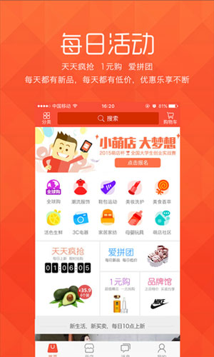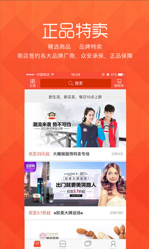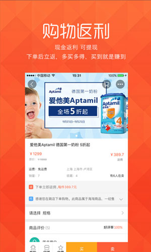 萌店app应用特色: 1.现金返利,可提现,下单后立返,多买多得,买到就是赚到。 2.全球购,购全球,正品采购,保税仓储,物流有保障,闪电发货。 3.天天疯抢、1元购、爱拼团,每天都有新品,每天都有低价,优惠乐享不断。 4.精选商品,品质保证,萌店签约各大品牌厂商,众安承保,正品保障。