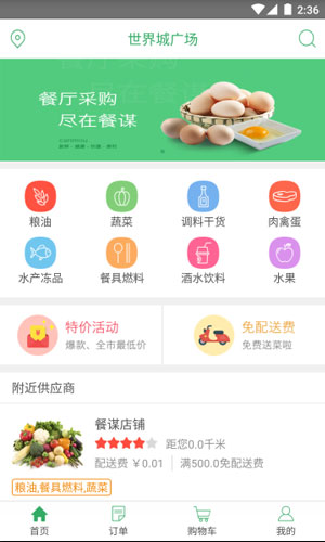 餐谋app上面有着餐厅所需的各种食品原材料以及辅料和餐具等等!所以在餐谋app上面,有需要的朋友们可以随时精心下单!而且餐谋app还支持先行赔付,质量问题,商城先行赔付。原材料,有餐谋就购了!