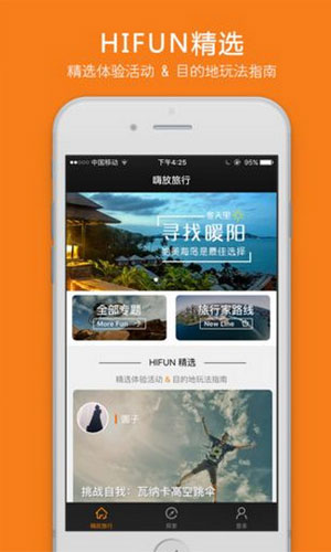 嗨放旅行app软件特色: 1、嗨放旅行app是一个全球特色旅行体验发现、预订平台。 2、通过遍布全球的“嗨玩达人”,嗨放旅行app为用户搜罗最具特色的境外当地旅行体验。 3、嗨放旅行app希望成为境外自由行用户的灵感获取入口,让用户的“灵感”瞬间变成旅行现实。