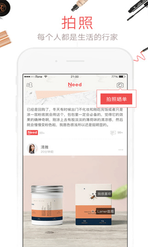 need购物,一款海淘免税购物软件,need购物精选全球好货,是女性用户最喜欢的购物软件,极致美护、全球零食、创意生活,need购物带给你全世界的品质生活商品,你想要的在need购物都能找到。