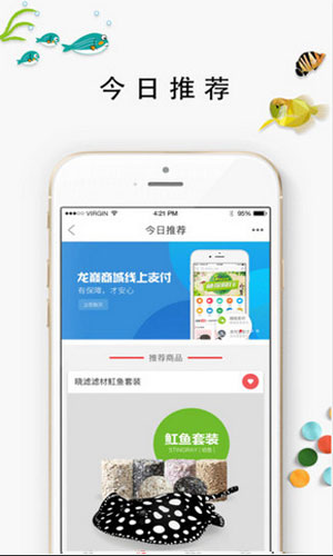 龙巅商城手机版软件特色: 1.龙龙巅商城手机版实时视频看鱼让您和爱鱼近在咫尺,语音通话让聊天更加便利。 2.龙巅商城app门活动天天有,品牌折扣任你挑,购鱼优惠早知道,惊喜超出你想象。 3.龙巅商城手机版具有商品搜索/浏览、评论查阅、商品购买、在线支付、实时通讯、订单查阅等功能,为您打造简单、快乐的生活体验,从此购鱼无忧。