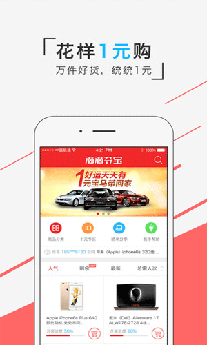 滴滴一元夺宝,一款集娱乐、购物为一体的众筹购物平台,滴滴一元夺宝为用户提供丰富的众筹云购活动,只要花费一元就可轻松获得最潮热卖商品,滴滴一元夺宝100%公平公正,100%正品保障。