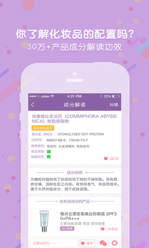 美丽修行app,化妆品成分查询软件,美丽修行app为用户提供专业的成分查询服务,用户可通过美丽修行app轻松查询各种化妆品的主要成分,同时美丽修行app还为用户提供美肤教程和美妆心得。
