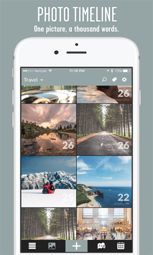 •通过日历、时间轴、地图和其他信息来浏览过往条目。