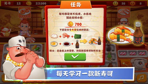 寿司厨神无敌版是一款料理学习游戏,在游戏中,玩家可以边学游戏,边学习做寿司的原理,让你成为真正的寿司大神。