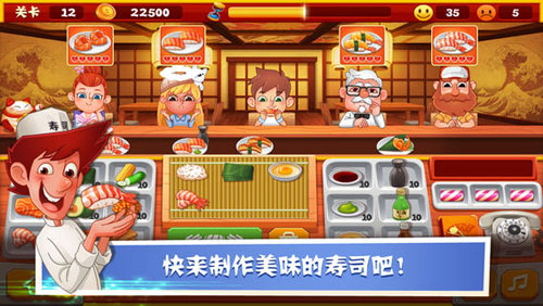 寿司厨神无敌版特点: 1、边玩边学,提高效率。 2、经营策略,养成习惯。 3、打造自己的时尚餐厅。
