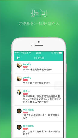好奇喵1.3版本更新内容: 问题种类进一步完善; 新增加了查看他人聊天记录的功能,请谨慎偷窥,谨防被偷窥; 界面设计上进行了小幅度的改动,现在看起来更加舒服,而且用起来更加方便了;