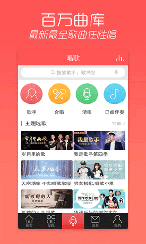 天天k歌,一款唱歌交友软件,以唱歌的方式结交朋友,来天天k歌传承天籁之声,做全民k歌达人,海量网红都已入驻天天k歌,千万歌友在这里等你,想要和天南地北伙伴、明星合唱一曲,就快来下载天天k歌吧!