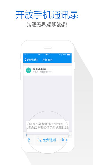 阿里钉钉版本1.1.0中的新功能 1.支持用户昵称和群名称搜索,找人找群一搜即可; 2.重要的事电话DING,接听后可以直接语音回复; 3.历史DING消息可删除,只需关注当前最重要的事; 4.免费电话一键拨打,紧急事情快捷沟通,更高效。