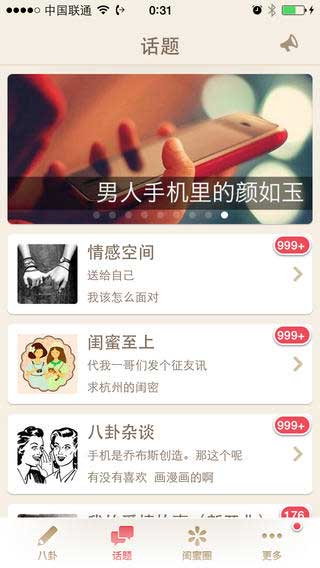 薇蜜app是一款即时的聊天工具,但是这里只限女性,同时该软件中有很多好玩的吐槽功能,只要你对什么不满意,你觉得什么该吐槽,你都可以来这里进行吐槽,发泄你心中的怒气。