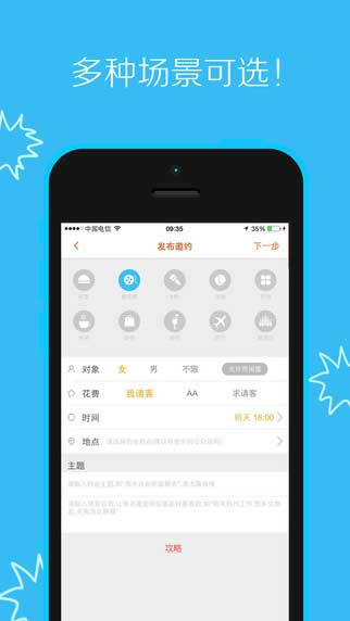 寂寞单身交友app1.0.0特色: 1、一页浏览ta的信息。 2、发布邀请,多种场景可选。 3、个人信息,动态,一键查看简单快捷。