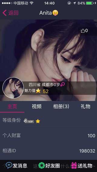 相遇视频交友1.1.2特点: 1、视频交友,朋友圈,附近人,强大聊天系统让你非一般的感觉。 2、注重聊天环境质量,多样化的礼物互动模式,增加聊天趣味。 3、精准化的排名分享,调动大众交流互动,促进好友间情谊。