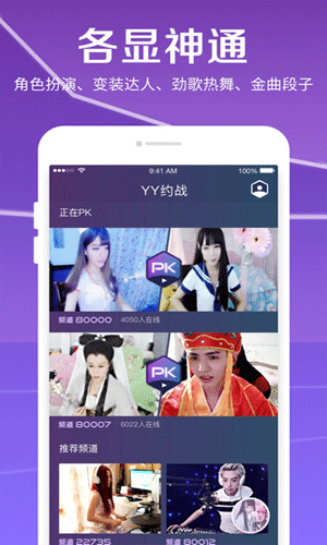 手机yy约战,国内最大的真人游戏视频直播软件,yy约战为你全天候精彩直播,御姐、萌妹、小鲜肉,你喜欢的主播都汇聚在yy约战哦,想看什么就有什么,赶快加入吧!