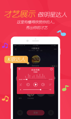 园园最新版本特色: 1.园园有最懂得欣赏你的人,你可以大方的秀场你的才艺。 2.这里有能听你诉说心事的知音,打开园园,也许Ta就在你附近。 3.在园园,可以拥有自己的私人房间,拉上朋友,在私密空间内尽情嗨。