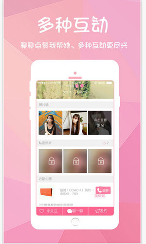 喵哆啦约炮特色: 1、真人照片人工审核,绝对的实名制,喵哆啦苹果版更加真实让您放心! 2、喵哆啦苹果版拥有超高的越爱成功率,让寂寞的男女实现真正零距离! 3、绝对的靠谱,喵哆啦苹果版打造线下约会管理,为您的约会提供更加舒适温馨的服务!