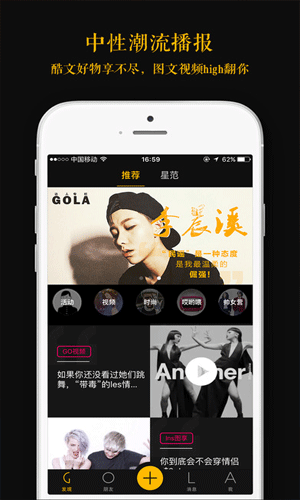 1.GO推荐——酷文好物享不尽 精彩图文视频推荐,让妳眼观全球中性潮流,近触帅女大咖,分分钟开阔眼界,妳就是内涵颜值帝。