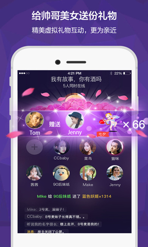 Hello语音交友功能描述 *游戏组队开黑,萌妹纸陪你玩不停 *免费创建多人聊天房间,一起聊更好玩 *K歌,游戏,真心话大冒险,相亲,交友,分享会,一房N用 *附近的TA,进入房间,拉近你我他的距离 *魔法搞怪表情,让你们的聊天更添乐趣 *通话,房间均可最小化的设计,一心多用,想看哪就去哪 *礼物互赠,向投缘的朋友互诉深情