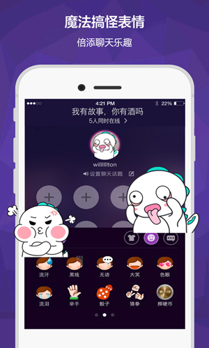Hello语音交友——让你在千万缘分中找到你爱的那个。Hello语音交友里面有着魔法搞怪表情,添加聊天乐趣,表情怎么能少呢?Hello语音交友还支持稳定的游戏语音,一起开黑冲榜神马的,怎么能少的了语音呢?爱上陌声人,就从Hello语音交友开始!
