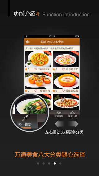 精选万道家常菜高清“同步视频”,轻松一点,即可随意浏览!一款全新的美食教程应用软件,一款全球最大的美食视频应用,一款全球视频品质最高的美食应用,拥有上万道家常菜、上万个同步视频,如此卓越不凡,将全面颠覆您对美食软件的认识。