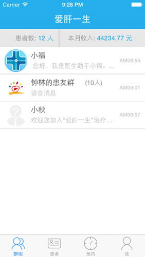 爱肝一生医生版功能 1.为患者提供定制化诊治方案 2.加入复诊提醒功能,及时推送患者 3.提供随访功能,加强与患者的沟通 4.提供出诊设置、患者列表以及收入统计