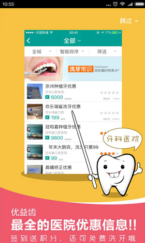 优益齿手机客户端是款非常便捷的健康护理类的app!现在这款优益齿app不仅有着海量的牙科医院,而且惊喜的是,优益齿app上面的优惠信息坐等你来看哦!