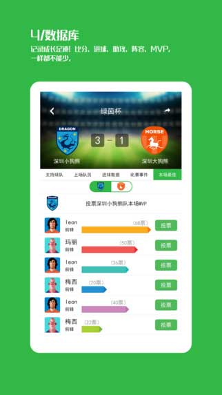 绿茵场是一个足球队管理赛事管理的应用软件,专业的业余足球队管理,强大的球队管理功能,简单易操作的比赛流程,给足球爱好者提供享受比赛,以球会友的平台,满足ta们的需求!