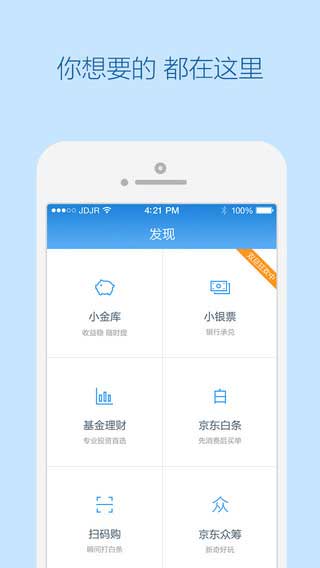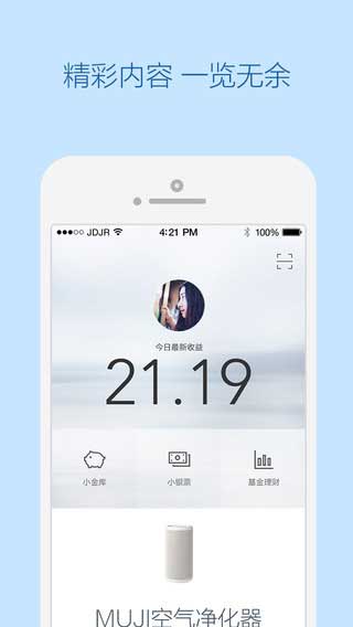 京东金融版本2.0.0中的新功能 1、优化了首页的导航页,使用户使用更方便。 2、首页上的今日功能全新设计,精彩内容不会再错过。 3.资产和收益一目了然,每天看一眼,安全放心。