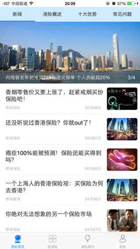 帮保保险IOS版特色 1.专为用户提供香港保险产品 2.推送香港保险最新资讯新闻 3.提供优质的保险产品推荐 4.支持一对一人工服务