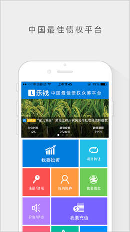 乐钱网软件特色: 在线投资以及理财; 投资账户明细查看; 投资项目详细介绍;