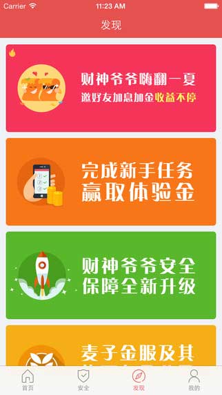 财神爷爷理财是一款专门为广大用户提供的高收益,易存取的,高保障的移动互联网投资理财应用软件,让你体验最有高效快捷的安全理财服务,让理财变得更加安全!