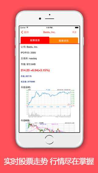 美股1.0.5特色: 1、提供标准普尔、维斯达克、道琼斯三大股市最新资讯。 2、集合了大量的股市专家,实时为你评论,分析动态。 3、获取了几千家上市公司的滚动资讯,全面掌握美股行情。