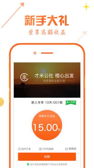 才米公社app3.0.7特色: 1、与招商银行合作,采用风险备用金制度,本息安全有保障。 2、专业化风险管理,资金同卡进出,财富管理井井有条。 3、与中国人保签订账户资金安全保障协议,资金安全再升级。