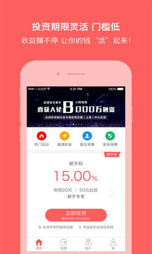 小狗钱钱app,国有绝对控股票据理财平台,小狗钱钱app国有控股实力雄厚、多重风控保障安全、低风险收益稳健,50元起投,风险超低,投资期限灵活,最高年化利率15%,小狗钱钱是全国唯一一家全民所有制企业注资、国企控股的互联网金融平台。