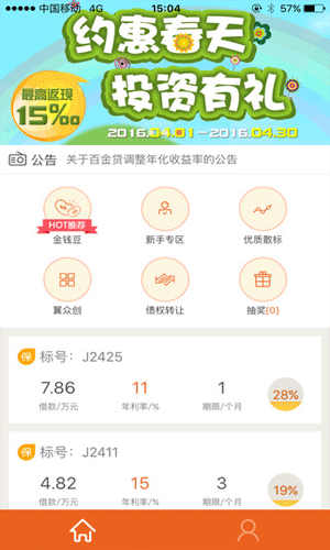 百金贷app,一款集投资、理财、借贷为一体的金融服务软件,百金贷app不仅为用户提供借贷服务,同时百金贷app平台汇聚众多优质理财项目,用户可在百金贷app放心投资,低门槛、高收益,年化收益15%-18%。