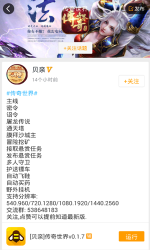 游戏蜂窝传奇世界手游ios版辅助工具是一款支持主线和密令以及诏令等等功能的手游辅助软件!这款游戏蜂窝传奇世界手游ios版辅助工具专为传奇世界手游量身定制,在野外也能挂机咯!还能自动买药以及发布悬赏任务等等。需要游戏蜂窝传奇世界手游ios版辅助工具就不要错过咯!