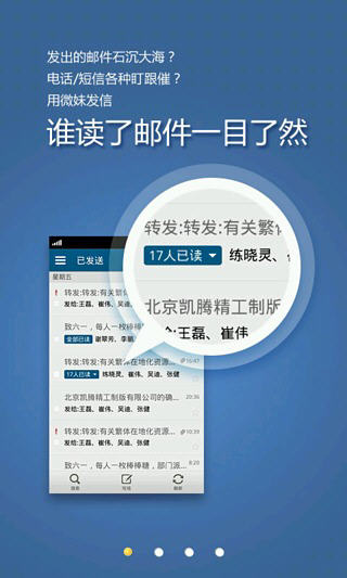 微妹邮箱,全新版本重磅来袭,除了微妹客户端外,用户还可使用其他邮箱,绑定多个账号,方便随时接收邮件,推送提醒功能,让你不错过任何一封邮件! 微妹邮箱主要功能 1.全新多类型附件:不论是照片、文档,还是音频,视频,微妹都支持。 2.便捷的操作体验:向左向右,不同操作,带来畅快体验。 3.支持附件解压和预览:多文本格式在线预览,压缩包在线解压。 4.智能的省流模式:微妹根据你的用网方式,自动控制流量输出。 5.新邮到时推送功能:每封邮件到达时,都及时通知你。 6.多个账号同时管理:一个微妹接收你的所有邮件。 微妹4.1.12版本更新内容 1.【优化】推送功能,更准确,更及时; 2.【修复】bug。