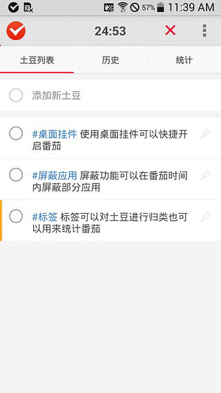 番茄土豆是番茄工作法和To-doList工具,它可以帮助你计划、管理、执行、记录工作。现在就开始使用番茄土豆,完成了不起的工作! 番茄土豆1.8.3版本更新内容 1.解决了部分机型提交番茄界面闪退问题; 2.解决了少数情况下番茄完成后点击提交却提示放弃问题; 3.解决了锁屏下结束没有弹窗bug。