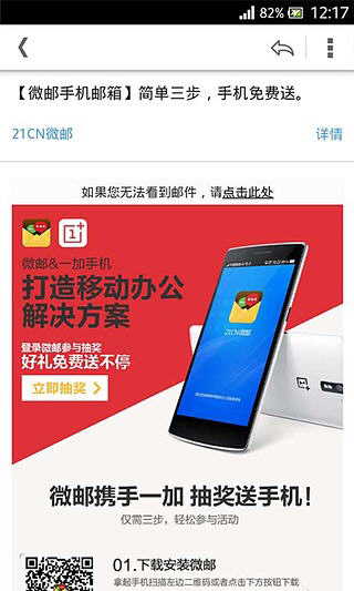 微邮,一款基于安卓平台的邮箱软件,除了具备邮箱的基本特色外,如接收、写信、回复等,它还能同台管理其他邮箱,及智能语音写信、批量管理、邮件送达时贴心提醒和联系人导入等特色功能。 微邮软件特色 1.智能语音写信,批量管理邮件; 2.设置相关参数,极致省流; 3.同台管理多邮箱邮件收发; 4.联系人快速导入及同步管理; 5.贴心的邮件送达提醒功能。 微邮5.4.5版本更新内容 1.【新增】手势锁,安全管理邮箱; 2.【优化】邮件发送及接收速度; 3.【修复】上一版本出现的bug。