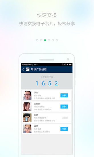 名片全能王手机版让你用手机快速识别储存名片,轻松管理你的商务人脉,可随时交换与更新信息的电子名片,让你随时知晓人脉变动。