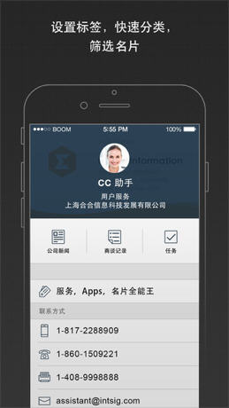 名片全能王企业版帮助企业更加方便的管理公司以及团队名片,支持添加各种职位以及详细信息方便查找筛选。