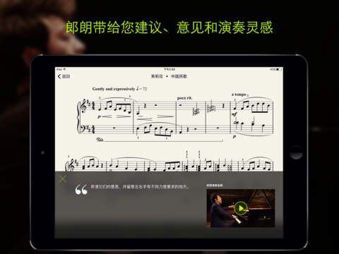 跟郎朗学钢琴app怎么样: 1、郎朗独家视频和指导 2、真实的钢琴录音 3、丰富多样的钢琴乐谱 4、精心设计和策划的热身练习和学习内容 5、延伸学习部分:术语表、作曲家、历史知识 6、适合从初级到中级(1-5级)的音乐学习者
