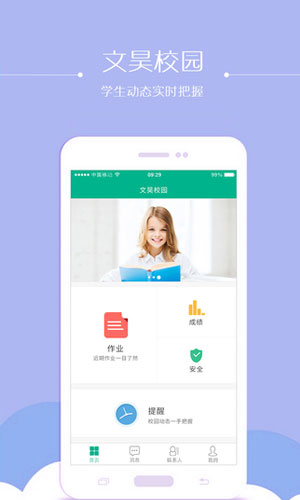 文昊校园app应用特色: 1.作业:每日作业一目了然,指导孩子轻松简单。 2.安全:老师细心、文昊精心、家长放心。 3.成绩:天知地知文昊知,科目、时间横纵全覆盖。 4.提醒:交费、通知、家长会,校园动态一手把握。 5.交流:孩子问题日日忧虑,“家·校”互通时时在线。