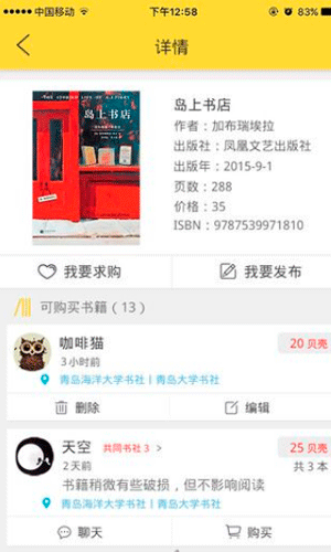 贝壳书社手机版软件特色: 1.贝壳书社手机版还具有强大的社交功能。 2.这个软件可以降低你的阅读成本,用你已经看过的书和你没看过的书进行交换,两全其美,资源的合理利用。 3.贝壳书社手机版软件本身操作简单,方便上手,内存小,不占用手机内存,还能为你节省很多的阅读流量,是你看书的必备神器。