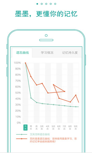 墨墨背单词ios,高效抗遗忘的背单词软件,完美规划海量英语词汇的学习和记忆软件。墨墨背单词ios中词库包含K12、大学、出国考试、日常交流的各类词汇书,而且墨墨背单词ios中更加支持粘贴自定义文本提取单词。支持轻松认知(英中对照)和“高清记忆”(验证拼写)两种模式;墨墨背单词ios中每个单词除系统自带例句外,还内接了多个辞典,支持一键查词;可设置每日学习量和每日复习提醒时间;统计图表可直观展示用户的遗忘曲线、学习情况和记忆持久度。 墨墨背单词ios的特点: 1、内容。墨墨背单词ios简洁明朗。解释精准,例句简明,助记丰富前所未有的清爽界面体验。 2、复习。墨墨背单词ios有的放矢。墨墨比您更懂您的记忆根据个体记忆差别和单词难度精准规划下次复习时间。 3、词源。墨墨背单词ios来有出处词库的出处与权威的教科书完全一致符合您对纸质书籍的使用习惯多样灵活的选词方式弥补纸质书籍不能给与的复习体验。 4、统计。墨墨背单词ios一目了然墨墨以图表的方式记录了你每日复习的点点滴滴每每回顾,你都会有一种成就感。
